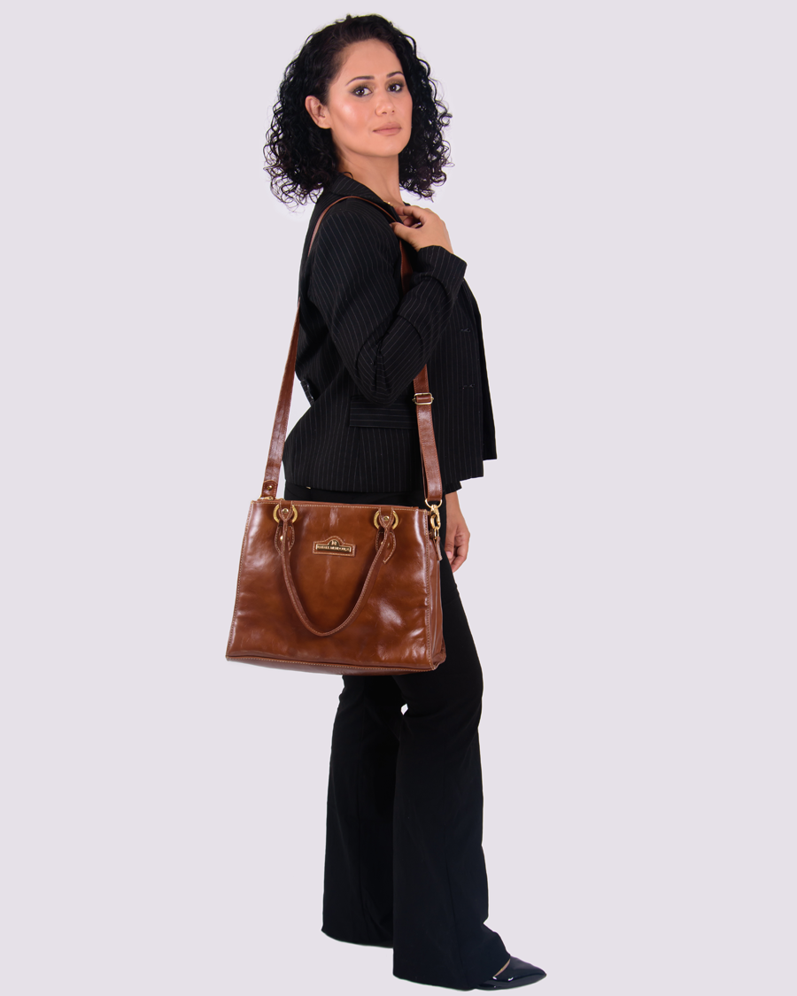 Bom espaço interno, ideal para levar cadernos, tablet e outros objetos. Com proteção para seu tablet contra leves impactos. Sua exclusiva manta pode ajudar a conservar a temperatura da sua fruta, água ou alimentos (obs.: não é uma bolsa térmica). Valoriza a sobriedade e aparência alinhada do couro. Por isso combina com mulheres de estilo mais clássico e é uma ótima pedida para advogadas, estudantes, executivas e outras mulheres de negócio.